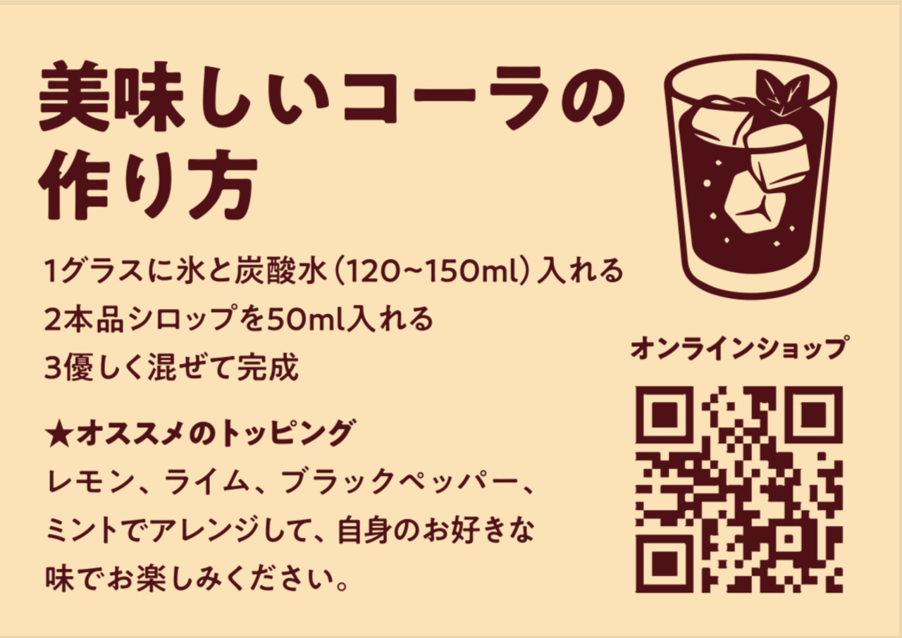 •内容量:250ml(濃縮クラフトコーラシロップ)